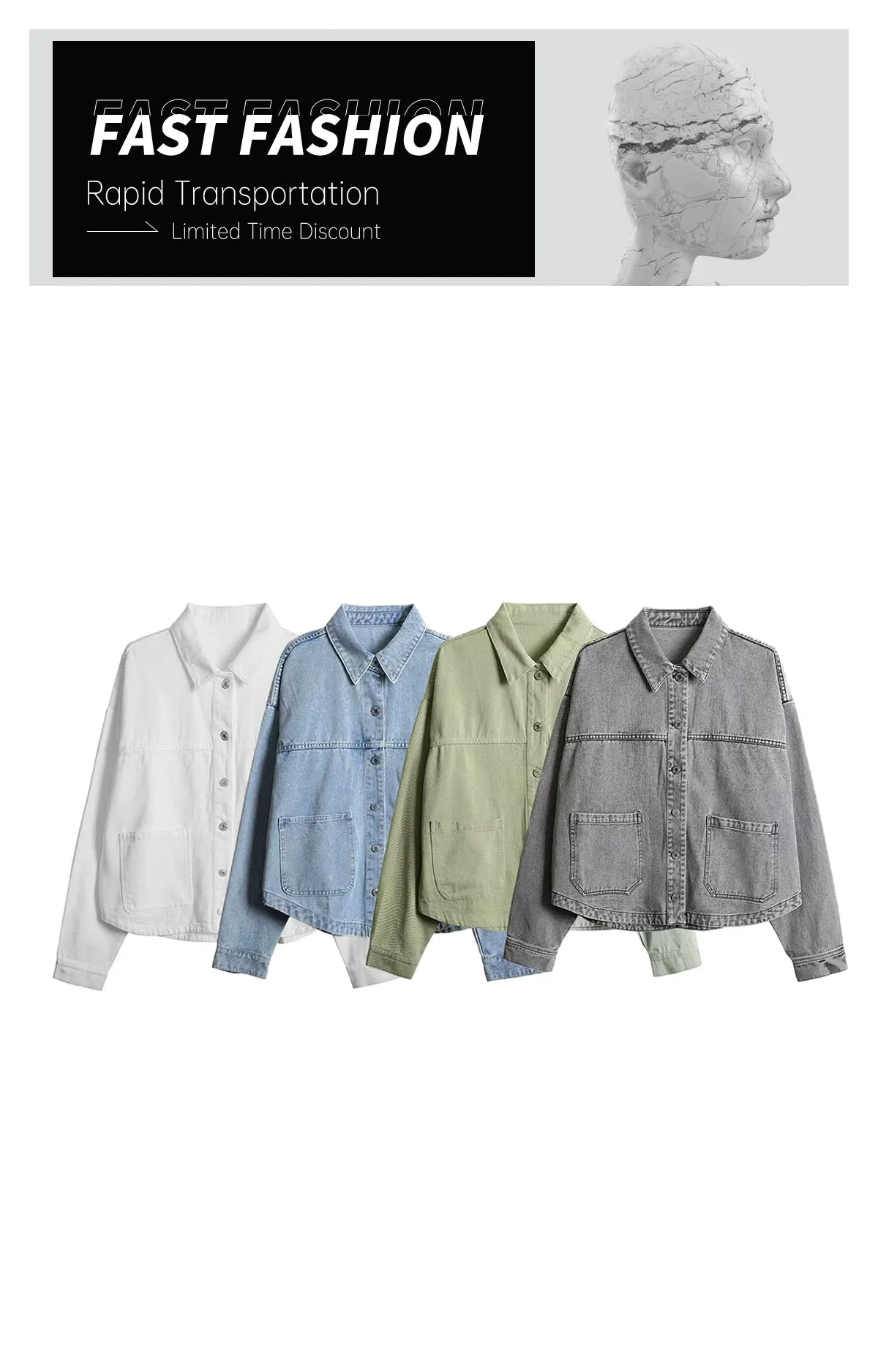 2024 ZAR4 Summer New Women's Loose Casual Lapel Long sleeved Patch Bag Decoration denim jacket jacket