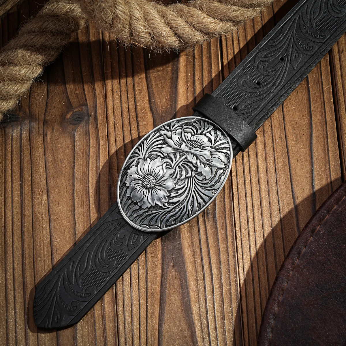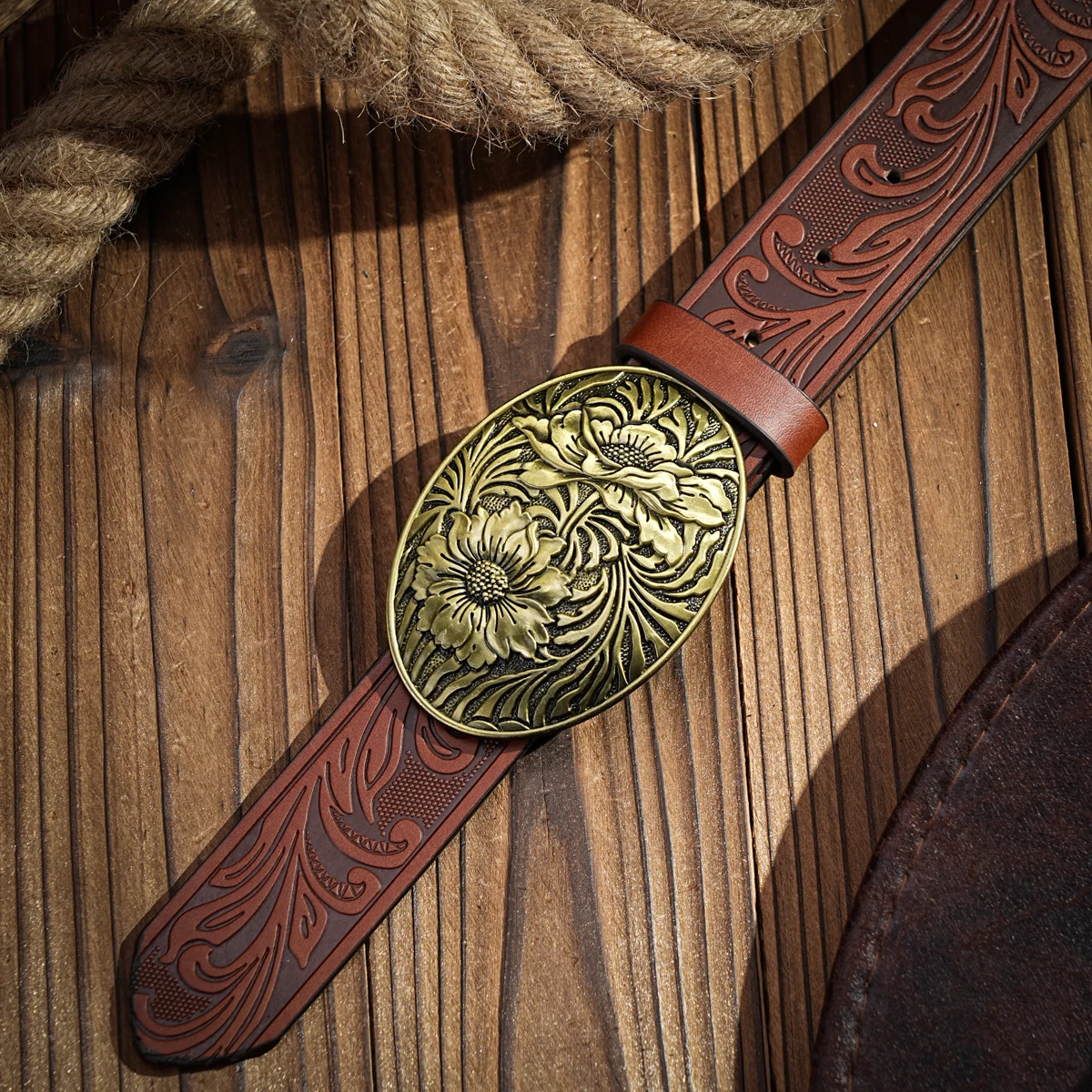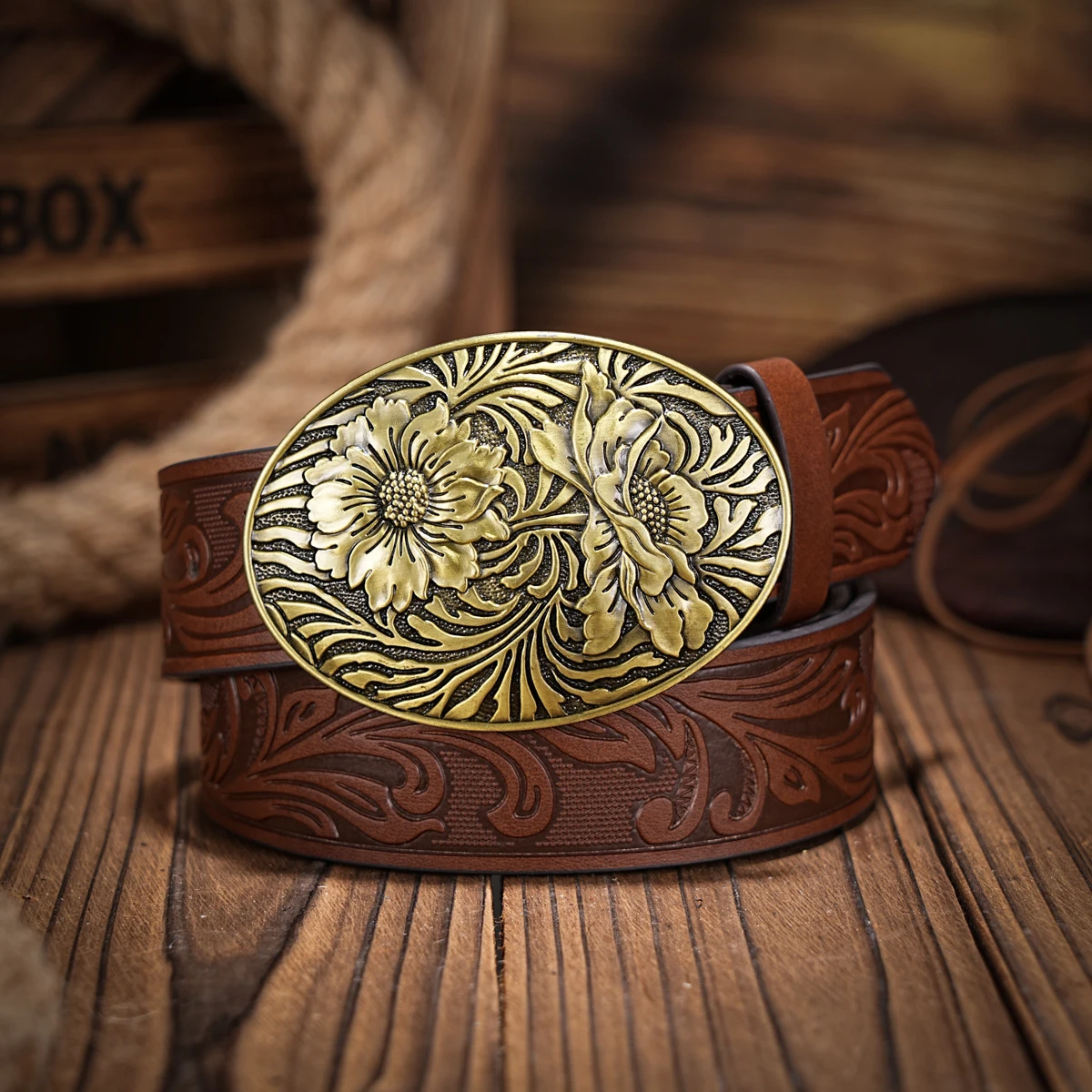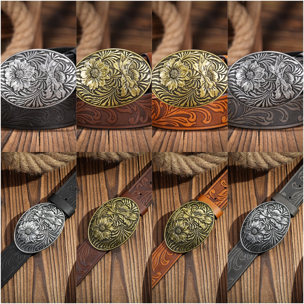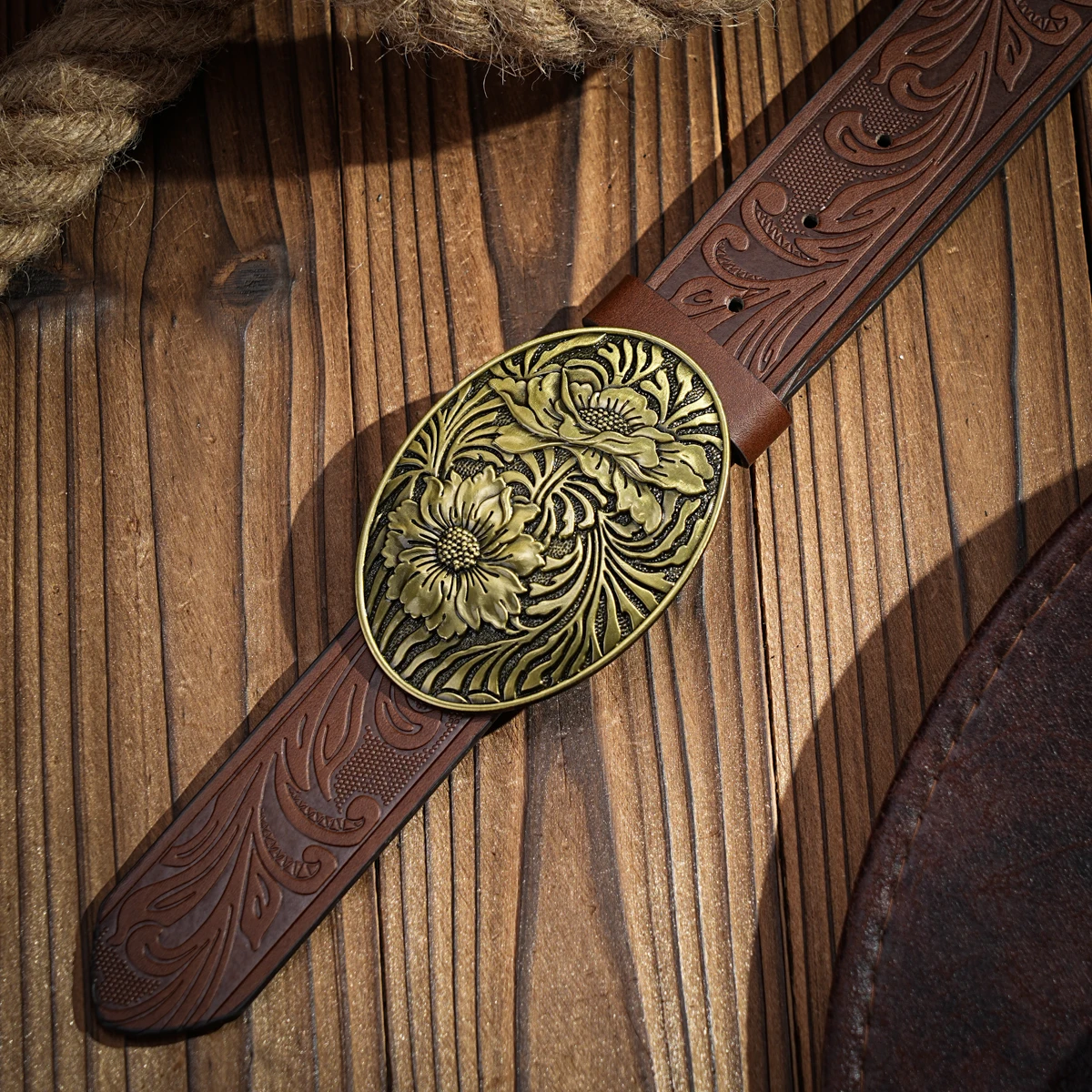 A men's and women's casual retro belt Western style! PU leather belt with metal buckle, suitable for daily work wear