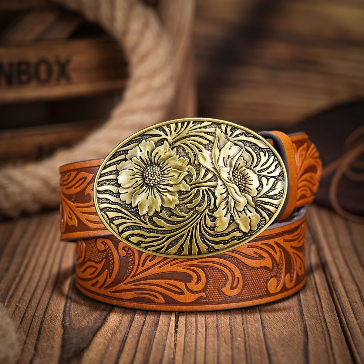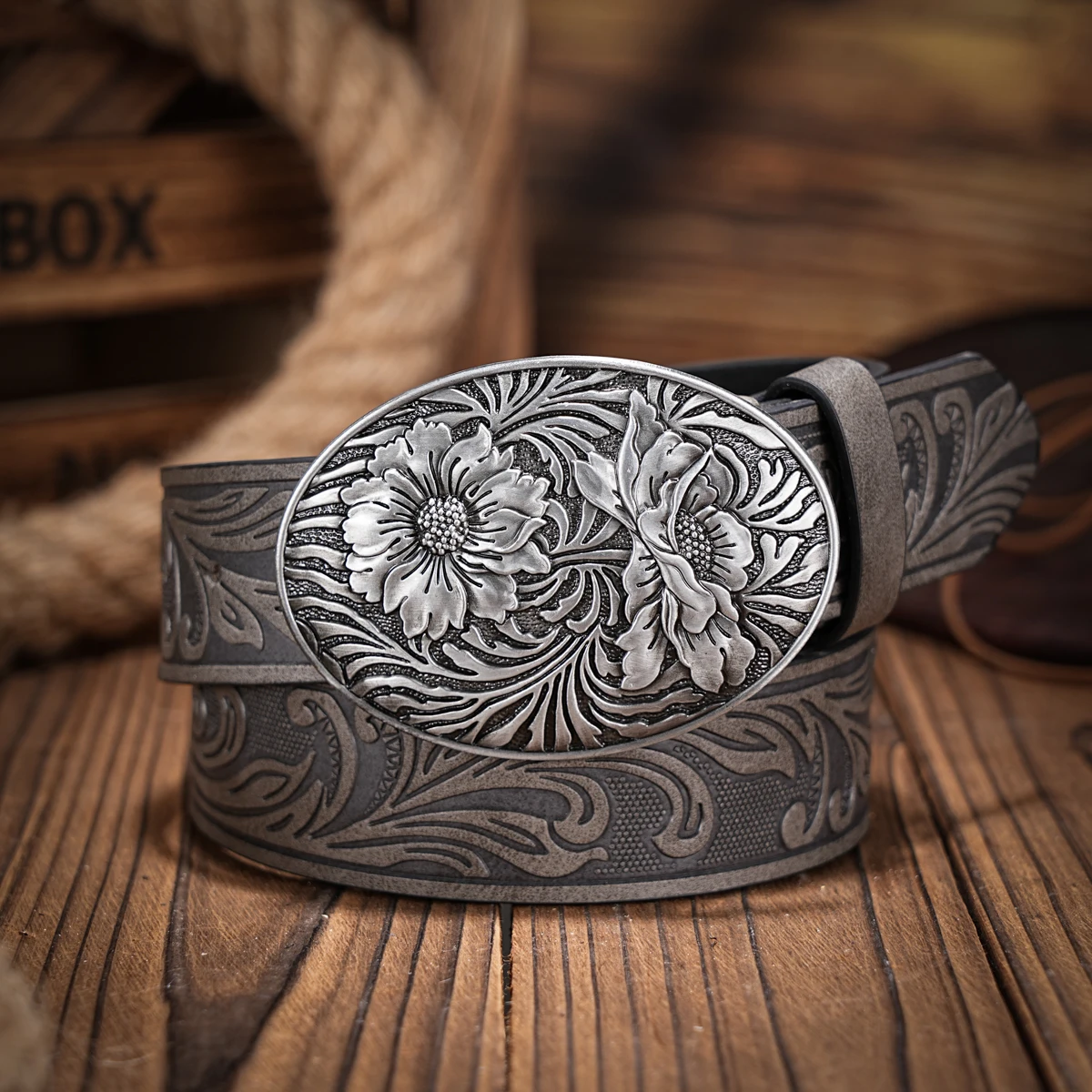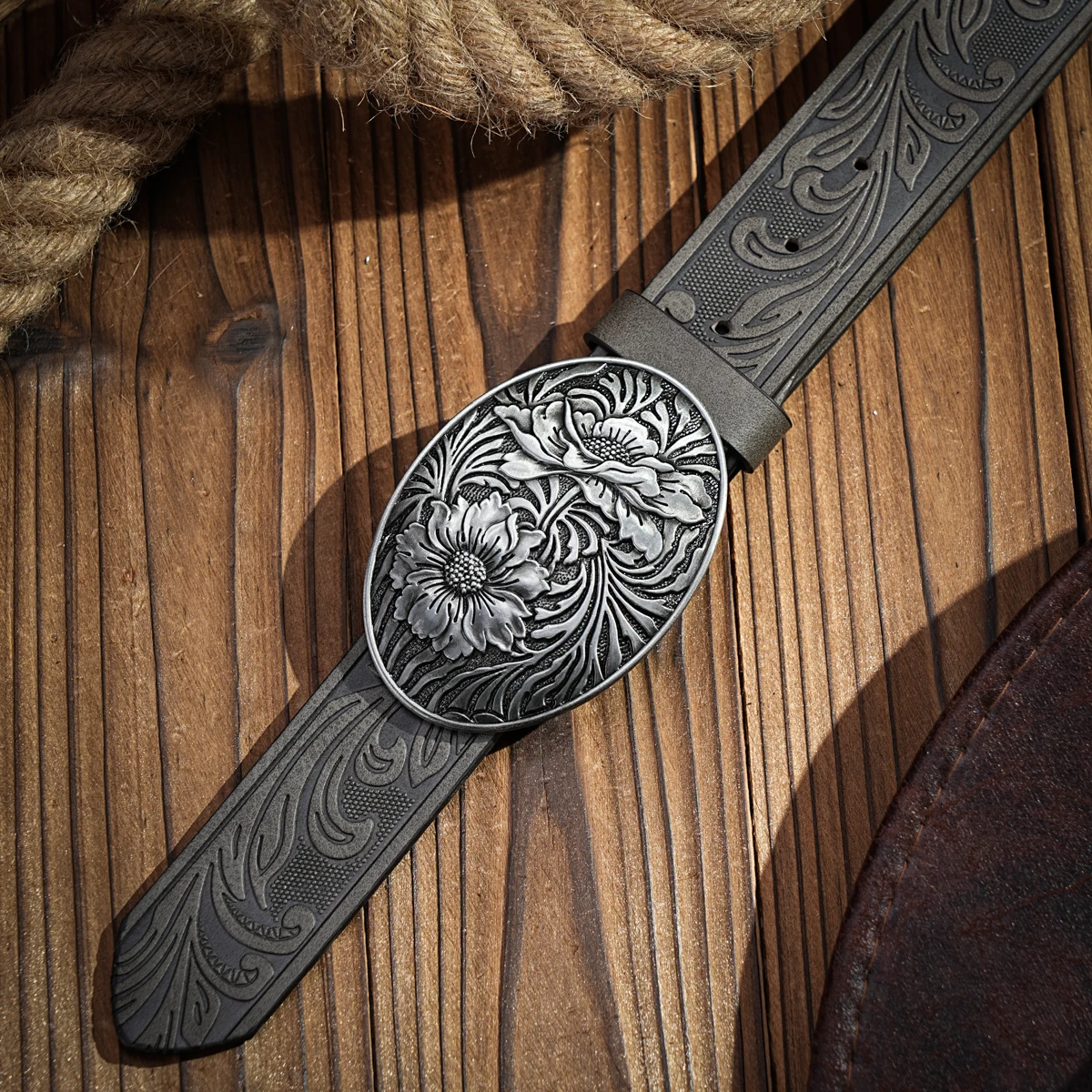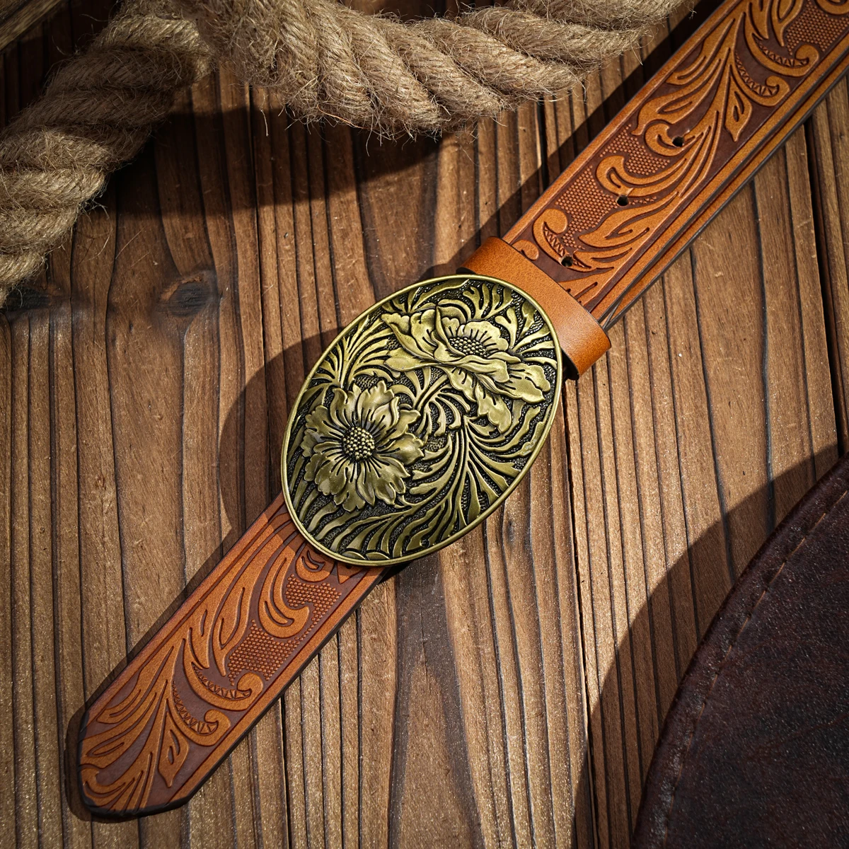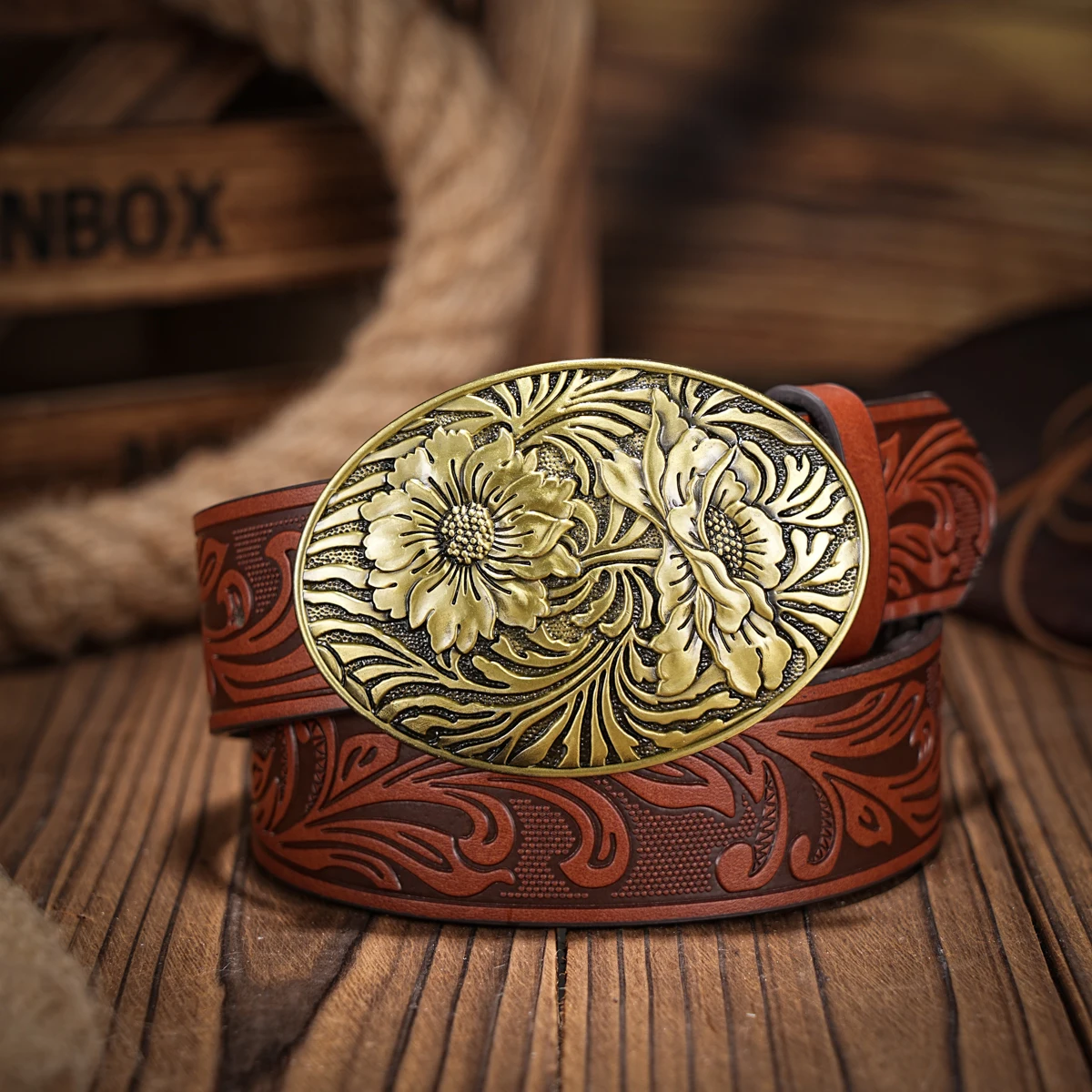 A men's and women's casual retro belt Western style! PU leather belt with metal buckle, suitable for daily work wear