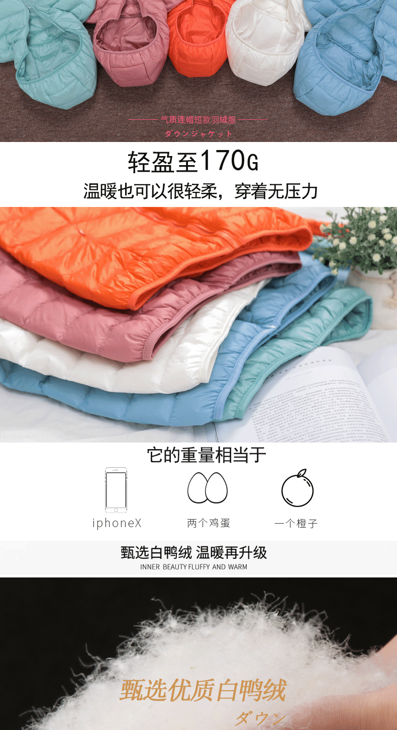 Duck Down Jacket Women Fashion Puffer Coat Autumn Zipper Slim Ultra Light Warm Coat Female Portable Down Jacket Winter